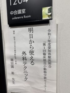先日、愛知県獣医師会が主催する学術セミナーが開催され、多くの参加者が訪れました。今回のセミナーでは、岐阜大学の堀切園裕准教授をお迎えし、『明日から使える外科テクニック』というタイトルでご講演いただきました。講演の内容は、基本的な手技から応用的なテクニックに至るまで、広範囲にわたってカバーされており、今後の日常診療に非常に役立つものでした。参加者たちは、実践的かつ即効性のある知識を得ることができ、大変充実した時間を過ごされたようです。